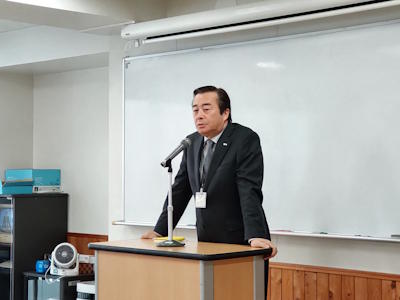 まず初めに、新任職員の紹介(就職指導室 福山先生)がありました。